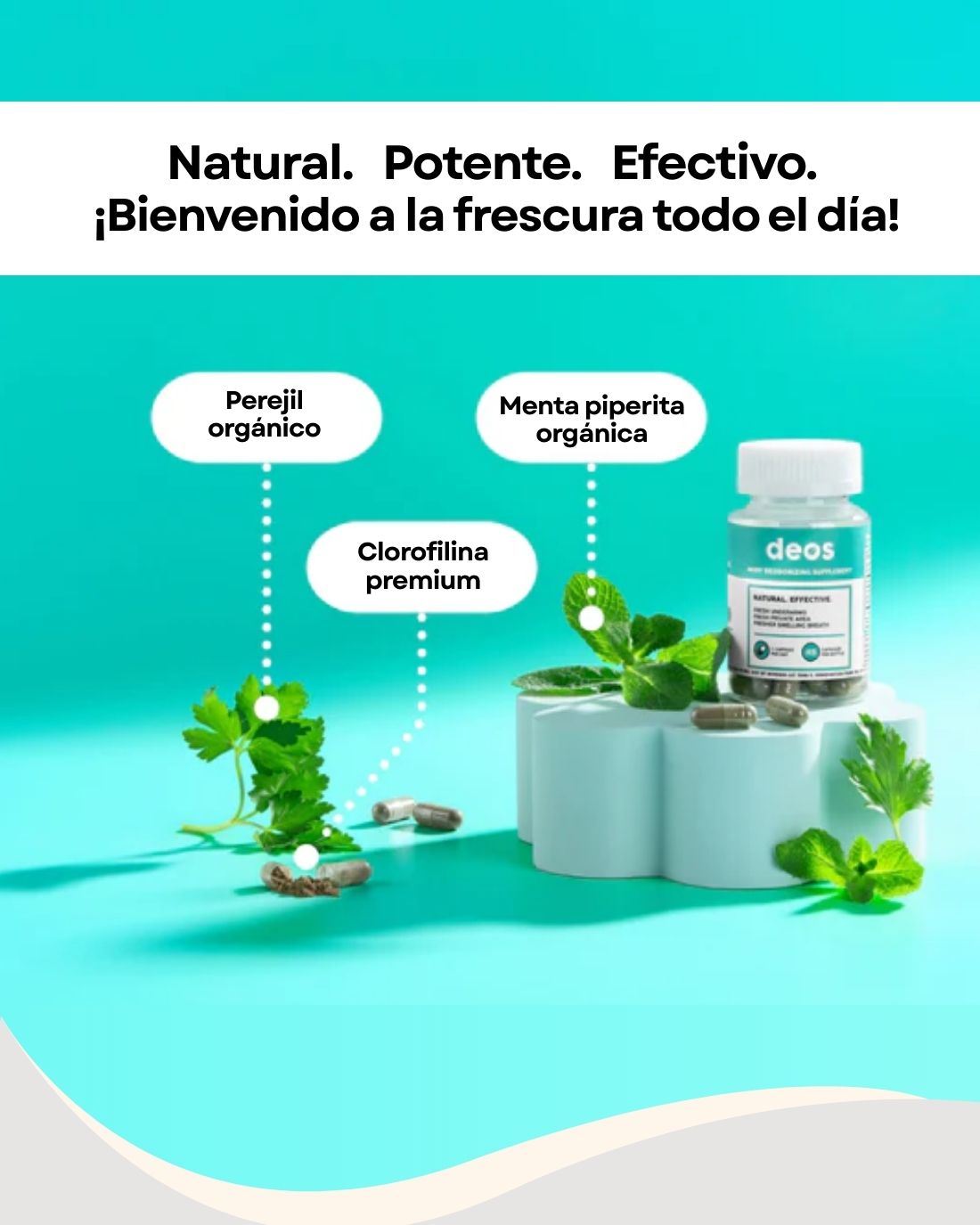 Potente desodorizante natural que ayuda a neutralizar olores corporales desde el interior, apoyando además la oxigenación y limpieza del organismo.